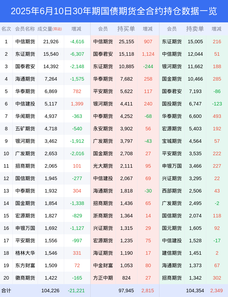10日30年期国债期货上涨0.07%,最新持仓变化