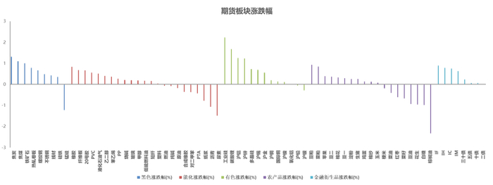 从板块整体表现看,有色、黑色多数上涨,农产品多数下跌。