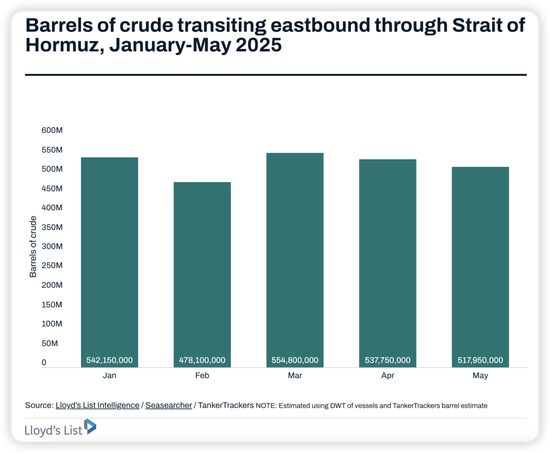 英国劳氏日报(LLoyd’s List)在《Everything you need to know about the Strait of Hormuz》一文中指出,霍尔木兹海峡,这条狭窄的水道,是全球石油贸易的关键节点,每月有超过5亿桶原油通过此处出口。然而,随着以色列与伊朗之间的冲突愈演愈烈,许多人担心霍尔木兹海峡的通航受阻将严重影响全球石油交易。