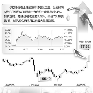 6月13日,除了国际原油价格受影响外,黄金等避险资产亦明显拉升,国际金价一度飙升至3467美元/盎司。当日,全球主要股市则出现下挫,美股三大指数集体大跌,道指大跌1.79%;欧洲和中东股市纷纷下跌。
