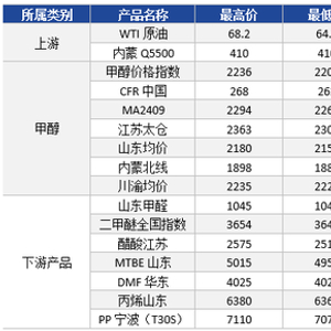 上周国内甲醇产业链价格变动