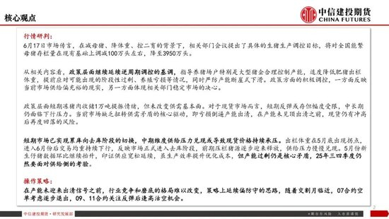 6月17日市场传言,在减母猪、降体重、控二育的背景下,相关部门会议提出了具体的生猪生产调控目标,将对全国能繁母猪存栏量在现有基础上调减100万头左右,降至3950万头。