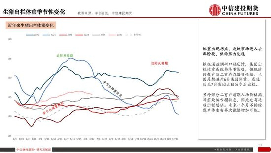 短期市场已实现累库向去库阶段的切换,中期维度供给压力兑现或导致现货价格持续承压。出栏体重在5月底出现拐点,进入6月份后交易均重持续下行,反映市场正式进入去库阶段,前期压栏猪源逐步迎来释放,供给压力慢慢兑现。5月份新生仔猪数据环比继续抬升,印证供应宽松延续,虽生产效率提升优化成本,但产能过剩仍是核心矛盾,25年三四季度仍然要面对供给侧的考验。