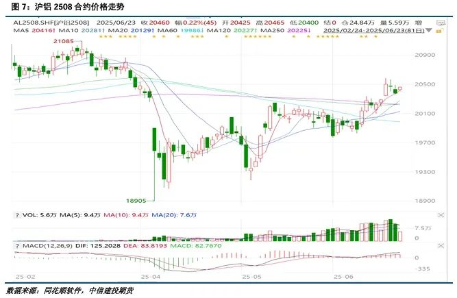 小结:海外地缘风险提升,美联储维持利率不变,同时下调了经济增速预期,宏观情绪整体偏空。后续关注中东局势进展,以及美联储降息是否提前。氧化铝现货供给持续改善,盘面Back结构有望弱化。电解铝成本端继续回落,供应较稳定,铸锭量有所下滑,未来的关注重点还是在于消费是否会大幅走弱。目前来看国内消费较稳定,海外主要面临钢铝关税提升至50%,钢制家电关税提升的问题。7月出口存在进一下回落的风险。短期铝价宽幅震荡为主,逢高可布局08空单。
