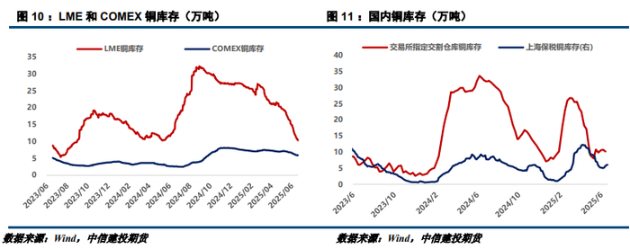 理由:宏观氛围偏空,铜价上方存在压制。近年来地缘冲突频繁,今年集中多次爆发,市场避险情绪的持续发酵对铜价存在施压。同时,贸易政策扰动加剧恶性通胀风险,6月美联储利率决议后上调美国经济滞胀预期、下调明年的降息预期,进一步打击市场情绪,铜价回落压力趋增。