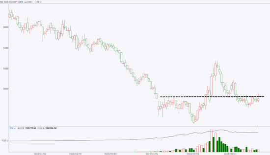 那么在7-9月最大雨季即将到来之际,市场存在将铝土矿发运回落作为主要逻辑进行交易的可能,再加上偏弱的供需格局或许已经被市场所充分计价,因此,贸然以偏空思路对待氧化铝或许会面临相对更大的风险。从技术分析的角度来看,基于日线级别的行情图表,氧化铝09合约在2920一带存在效力较强的压力区间,交易者应重点关注盘面能否有效突破这一压力区间。