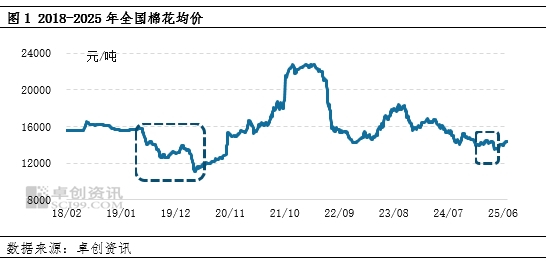 【导语】2025年特朗普2.0时代的到来,美国关税大棒在全球市场挥舞,棉纺织产销国多受高额关税袭扰,棉花价格下探至近六年低位。伴随5月份中美日内瓦经贸会谈为中美关税争端迅速降温,随后棉花价格出现阶段性回升。展望下半年,中美磋商或继续进行,叠加美联储降息及国内宏观向好政策支持下,棉花价格重心或上移。