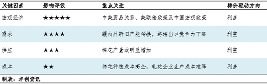 表 2025年下半年棉花市场影响价格的主要驱动因素