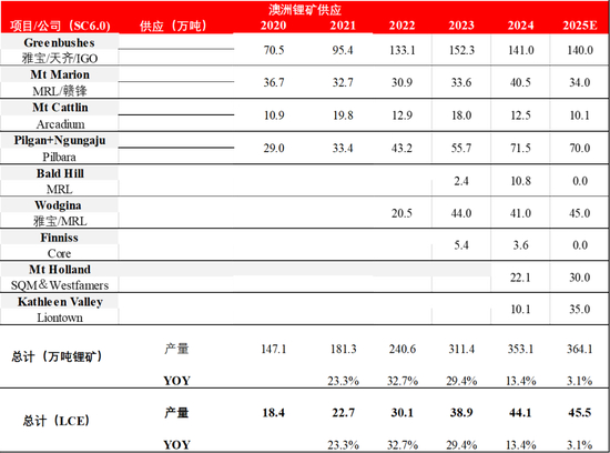 澳洲:2025年增1.4万吨LCE,同比+3.1%,澳矿矿山维护和新项目爬坡齐头并进