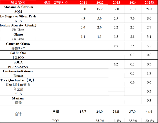 海外锂资源情况:2025年增7.6万吨,南美盐湖将继续发挥成本优势,新项目将陆续爬坡