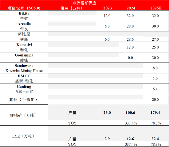 非洲:锂矿增量主要来自Goulamina、手抓矿,萨比星产能亦有所提升