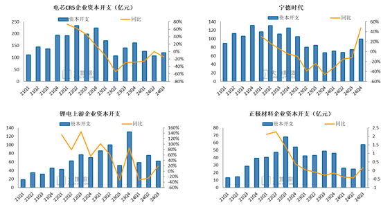 头部电芯厂、正极材料厂资本开支渐回暖,上游亏损严重资本开支边际趋弱