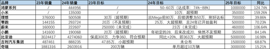 2025年各车企销量目标增速显著
