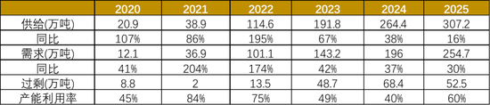 供给增速边际下滑;2025年新增26.8万吨,同比+19.05%