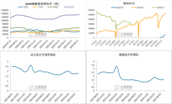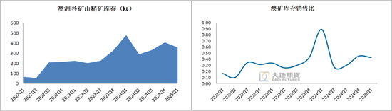 澳矿三季度小幅累库,截止25Q1澳矿库存4.46万吨lce,环比-12.4%,库销比正常