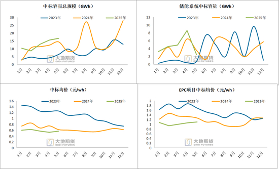 终端需求:储能:今年以来中标价震荡下行,今年以来招标量提升明显