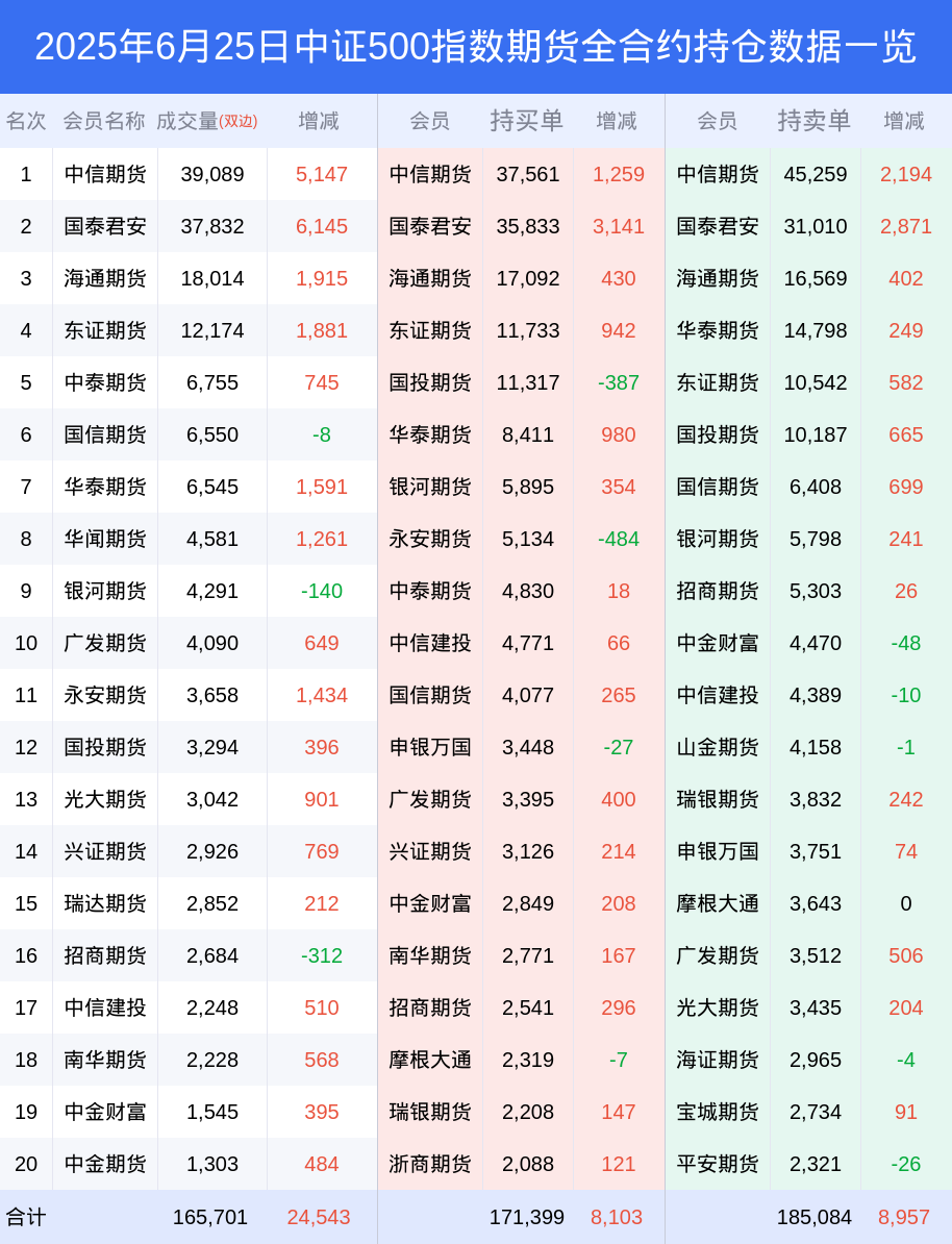 25日中证500指数期货上涨2.37%,最新持仓变化