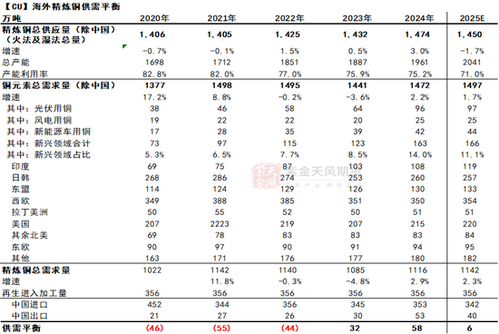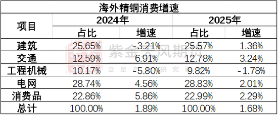 相比于2季报,我们下调欧洲、美国等地区的铜消费量增速,预计2025年海外铜消费量增速约为1.68%。