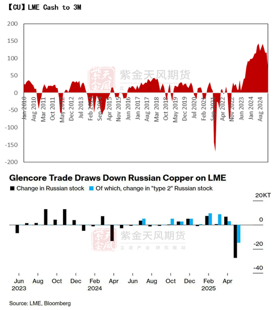 随着铜市场个别地区板块吃紧,原本在全球市场上地位尴尬、被边缘化的俄罗斯铜,也开始成为国际市场刚需的“补位对象”。尽管俄罗斯铜受到LME “第二类”(Type 2)制裁无法交割,但瑞士、美国和欧盟公司目前并不受限制。由于中国实际需求依然巨大,2季度开始,国际贸易商嘉能可从瑞士提取LME俄罗斯铜绕开制裁,并计划将其运往中国。这也导致5月LME库存大规模下滑,其中14,800吨为Type 2俄罗斯铜——这也是自2024年制裁生效以来,首次在LME库存中看到Type 2俄罗斯铜的净减少。面对全球铜消费增长,市场出现“宁要俄铜、不缺原料”的现实选择。