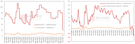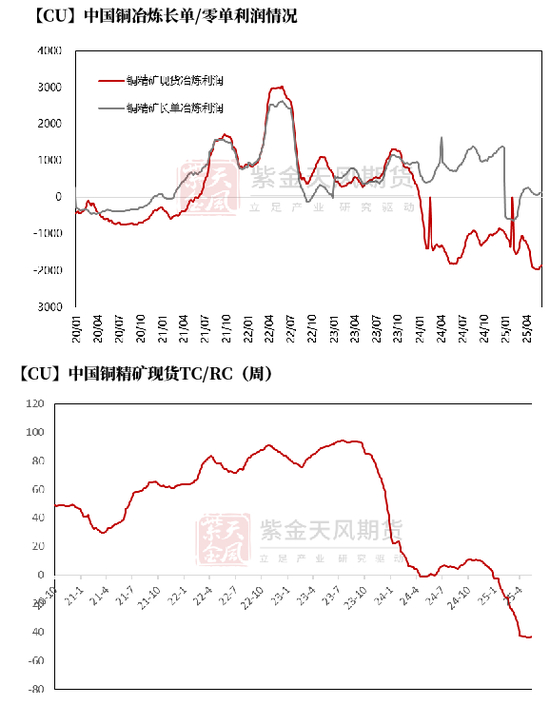 不过需要注意的是,由于TC价格持续下滑,且再生阳极加工费同步调降,导致国内冶炼厂除去部分铜矿长单以外,矿端零单及再生阳极板加工均处于亏损状态。