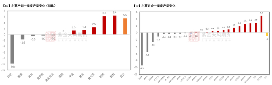 从2025年一季度以来全球范围内的矿石供应整体呈现出偏紧态势。其中,主要的减量来自于嘉能可旗下矿山的持续减产以及自由港位于印尼矿山的产量变化;主要的增量来自于智利——2025年开年以来智利国家铜业的产量逐步修复,以及刚果地区南部矿山的持续放量;