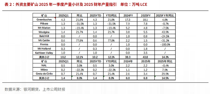 2025年盐湖新增产能主要是赣锋Mariana氯化锂项目、拉果错一期、3Q盐湖、盐湖股份扩建、智利Atacama扩建。锂云母新增包括内蒙古加不斯铌钽矿、江西茜坑矿、湘源二期等。锂辉石新增主要是澳洲格林布什三号加工厂和皮尔巴拉P1000项目,以及巴西Neves。其中不乏四季度以后建成的规划,因此2026年仍有锂矿产量爬坡的压力。