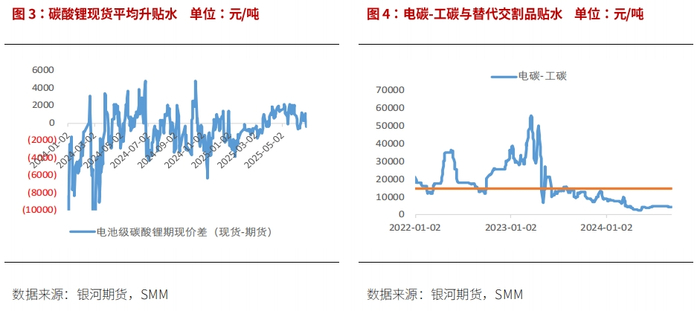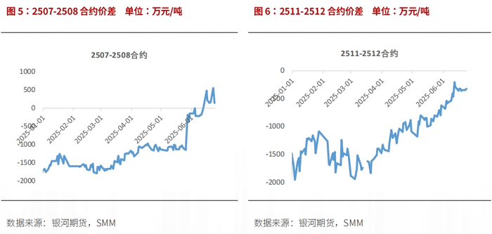 今年因交割利润不足,贸易商操作空间下降,期现业务较难开展,月间价差也难以给出套利空间,广期所交仓量有限,仓单保持2-3万吨波动,容易形成较高的虚实比,引发市场对近月挤仓的担忧,但实际社会库存充裕,一旦给出交割利润,仓单会增加很快。6月以来,lc2507-2508一度转为back结构,但随着09空头移仓至07,价差再度走平。累库压力下,正套较难长时间维持。