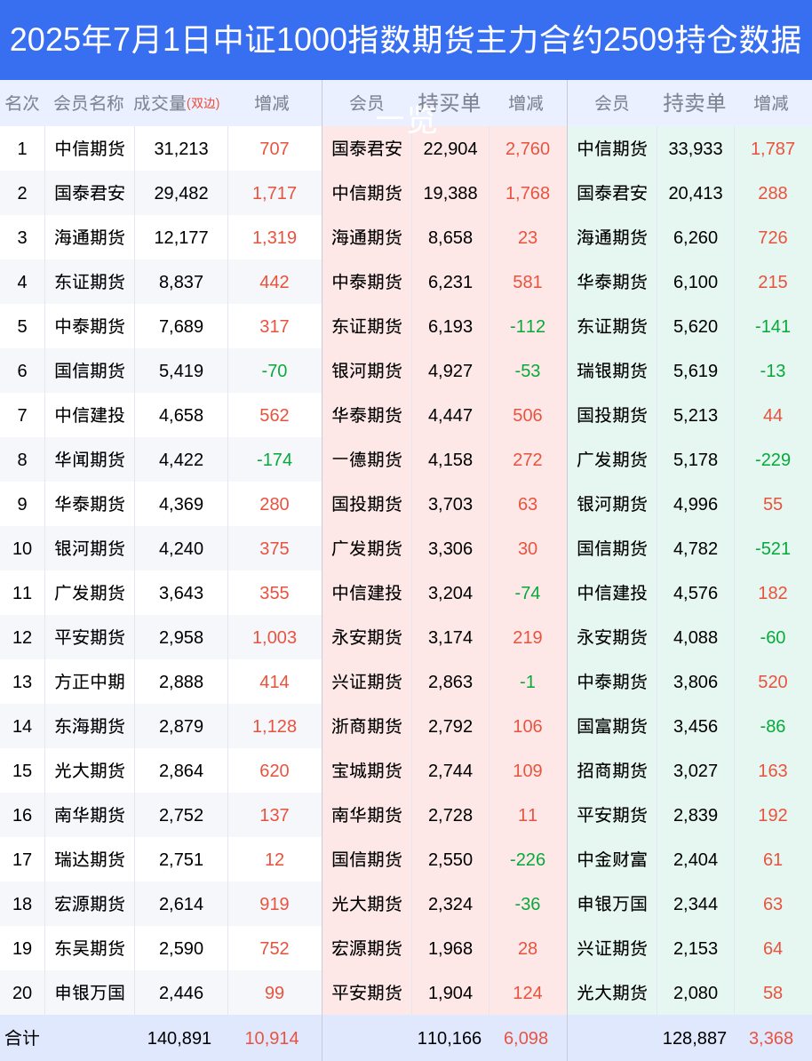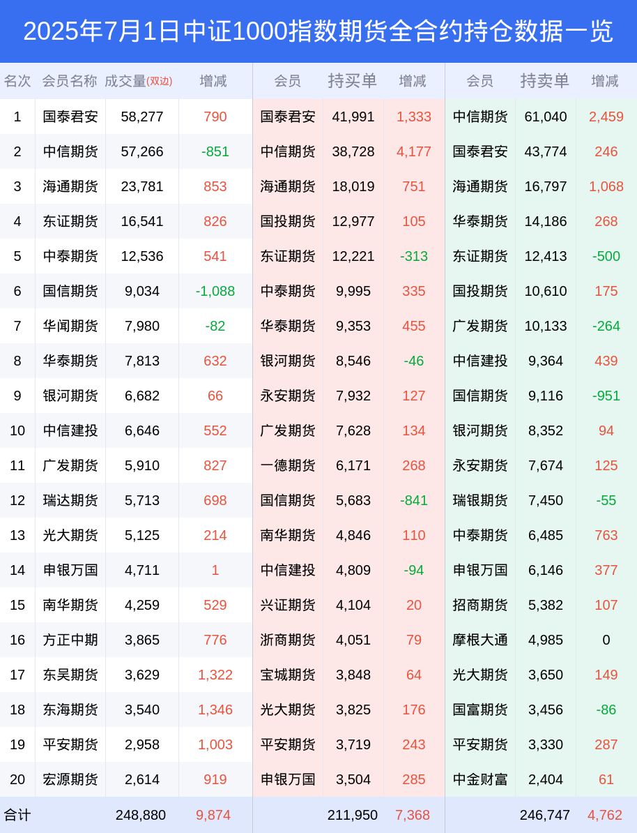 1日中证1000指数期货下跌0.36%,最新持仓变化