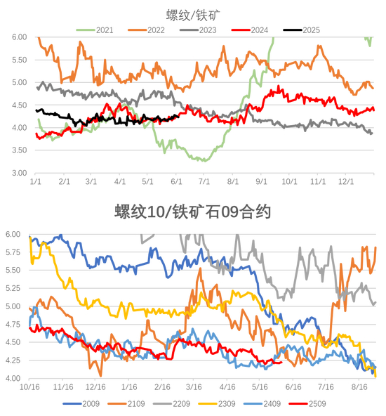 整体来看,铁矿基本面好于螺纹,价格较强,螺矿比收缩。