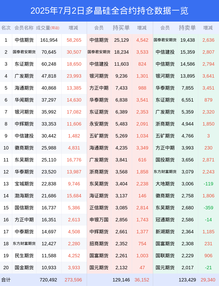 2日多晶硅上涨6.99%,最新持仓变化