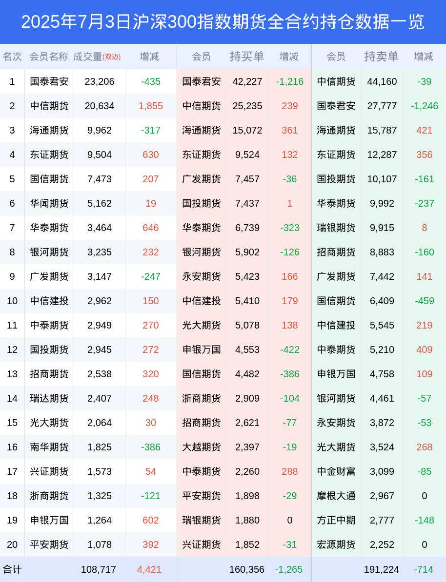 3日沪深300指数期货上涨0.67%,最新持仓变化
