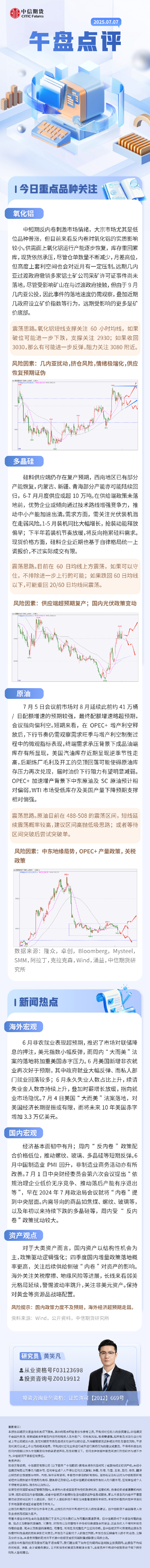中信期货:午盘点评7.7