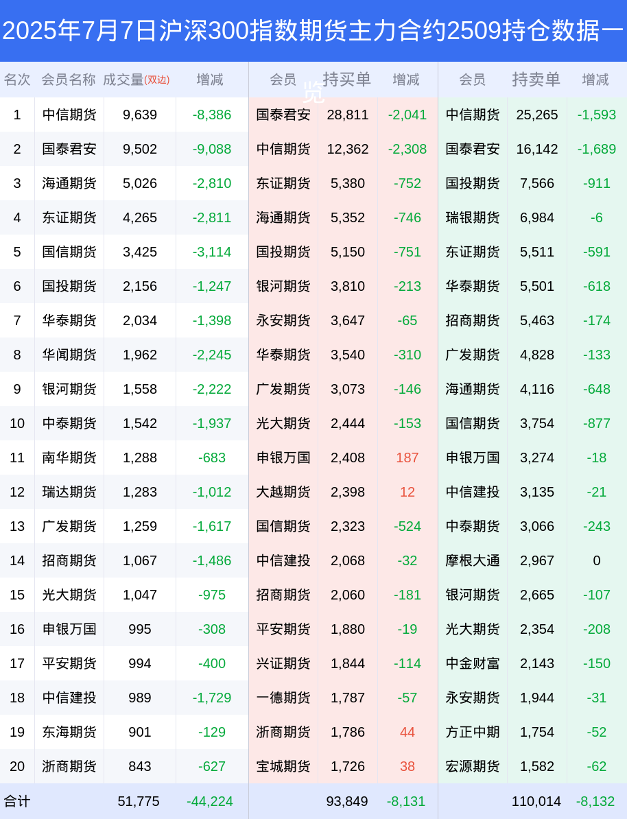 7日沪深300指数期货下跌0.31%,最新持仓变化