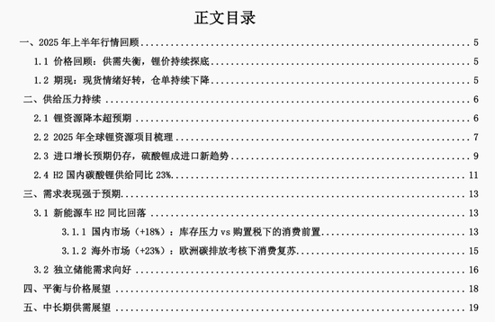 时值7月初,碳酸锂价格经历一个月底部震荡后出现小幅反弹,本篇报告将分析当前碳酸锂供需格局, 判断下半年价格走势;同时通过梳理全球主要锂资源项目的建设规划与投产进度,展望 2026-2028 年行业 供需变化。