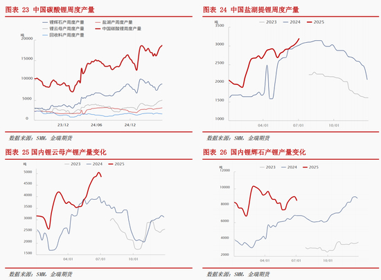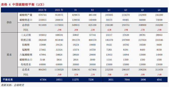 2025年 H2 国内碳酸锂总供给预计达62.5万吨,同比23%,其中国内产量预计47.4万吨,同比21%, 进口14.2万吨,同比10%。全年总供给117.5万吨,同比29%,其中产量90万吨,同比33%,进口26万吨,同比11%。利润修复下企业生产意愿回升,但亦有部分企业因技改检修,锂价低位震荡下,供给扰动较为频繁。海外项目持续放量,下半年进口精矿量和进口碳酸锂量存在增长预期。