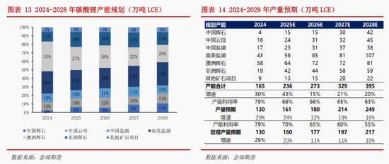 展望 2026-2028 年锂资源供需,在年复合增长率 15%的需求假设下,锂资源维持过剩预期。锂资源产 能规划量大,2026-2028 年产能复合增长率达到 18%,考虑价格承压产能利用率下降,实际产量复合增长率 或降至 15%。悲观供给假设下有望见到短缺,但锂价需持续低于 6 万元/吨以下,挤压矿端项目利润,从而 抑制新项目投产。