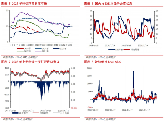 从境内外各自平衡结果看,下半年国内不需要额外打开进口窗口,无跨市反套的驱动力。此外,在进口窗口不打开的前提下,国内也开始累库,随着库存的累计,现货升水和沪锌的back结构也响应回落。