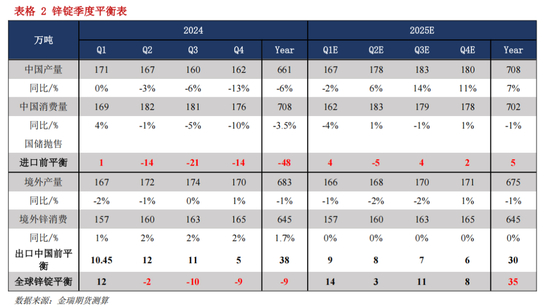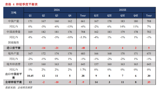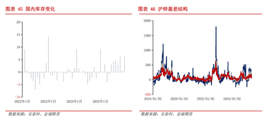 基于对供应、消费各自的预期进行测算,2025年下半年能够出现过剩兑现在锌锭环节;值得注意的是,考虑到冶炼与矿之间存在矛盾,因而对于下半年锌锭增长的测算较为保守,累库程度也较为谨慎。