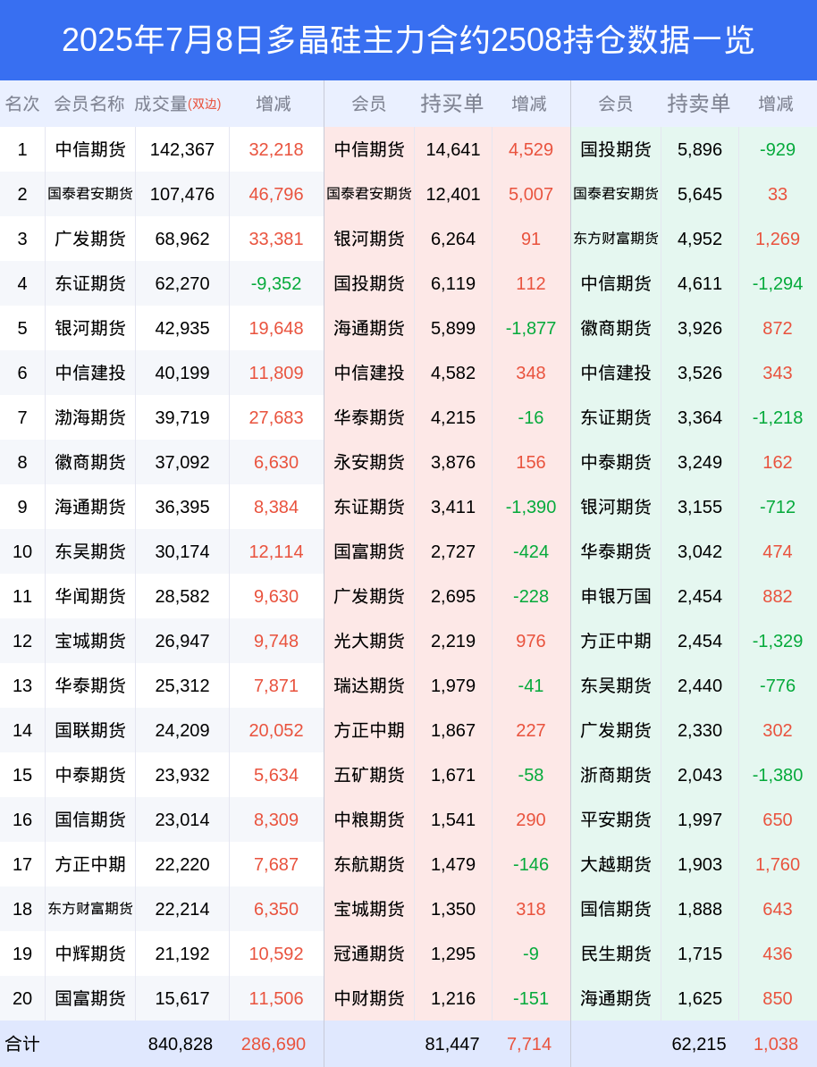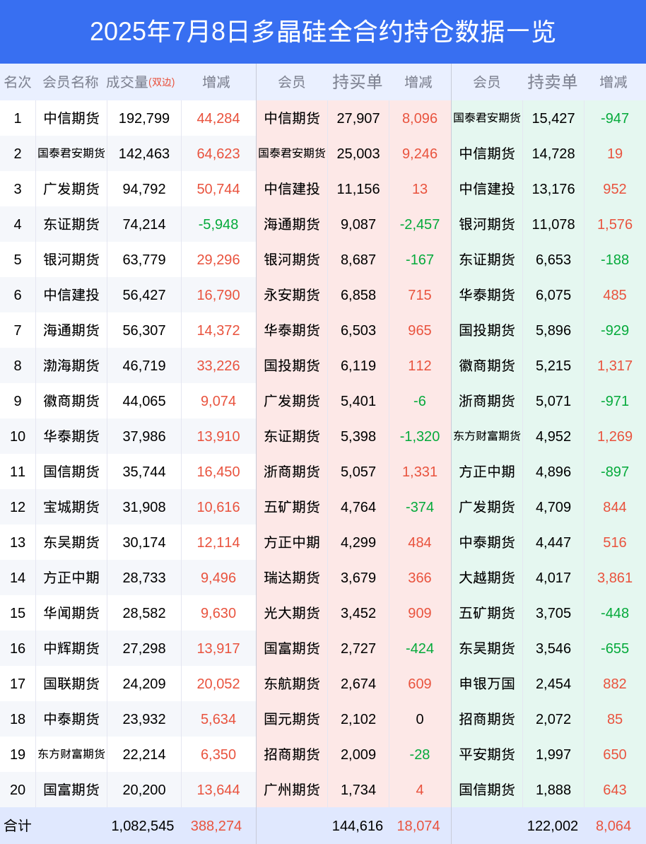 8日多晶硅上涨7.00%,最新持仓变化