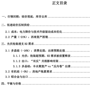 在西南工业硅复产意愿有限的情况下,下半年有望实现供需紧平衡,供给同比-25%,需求同比-7%, 去库 3 万吨;供给同比-23%,需求同比-12%,全年有望去库 12 万吨。整体看,西南复产量级对下半年平 衡影响较大,当价格突破 9000 元/吨关口时,西南丰水期开工率有望获得实质性改善。