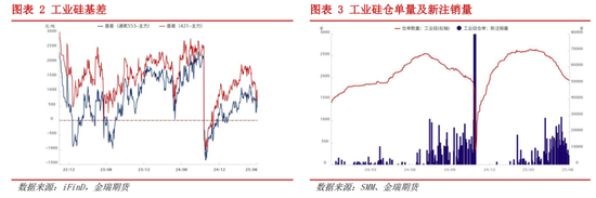 库存方面,上半年工业硅整体去库进程缓慢,但仓单数量持续缩减,基差逐步修复。据SMM,截至6月24日,工业硅社会库存54.2万吨,下游原料工业硅库存20.45万吨,样本厂库库存22.7万吨,总库存高达97.4万吨,相当于超三个月的工业硅消费量。现货市场维持升水格局,叠加盘面交割意愿增强,六月基差逐步回归。