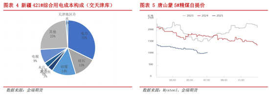 上半年工业硅成本延续下行趋势,主要受双重因素驱动:一是煤炭价格回落带动自备电厂发电成本 及硅煤采购成本同步下降;二是部分地区协议电价优惠进一步降低外购电成本。与此同时,行业技术升级 成效显著,大炉型产能陆续投产推动平均电耗及辅料消耗持续优化,较去年同期实现明显下降。