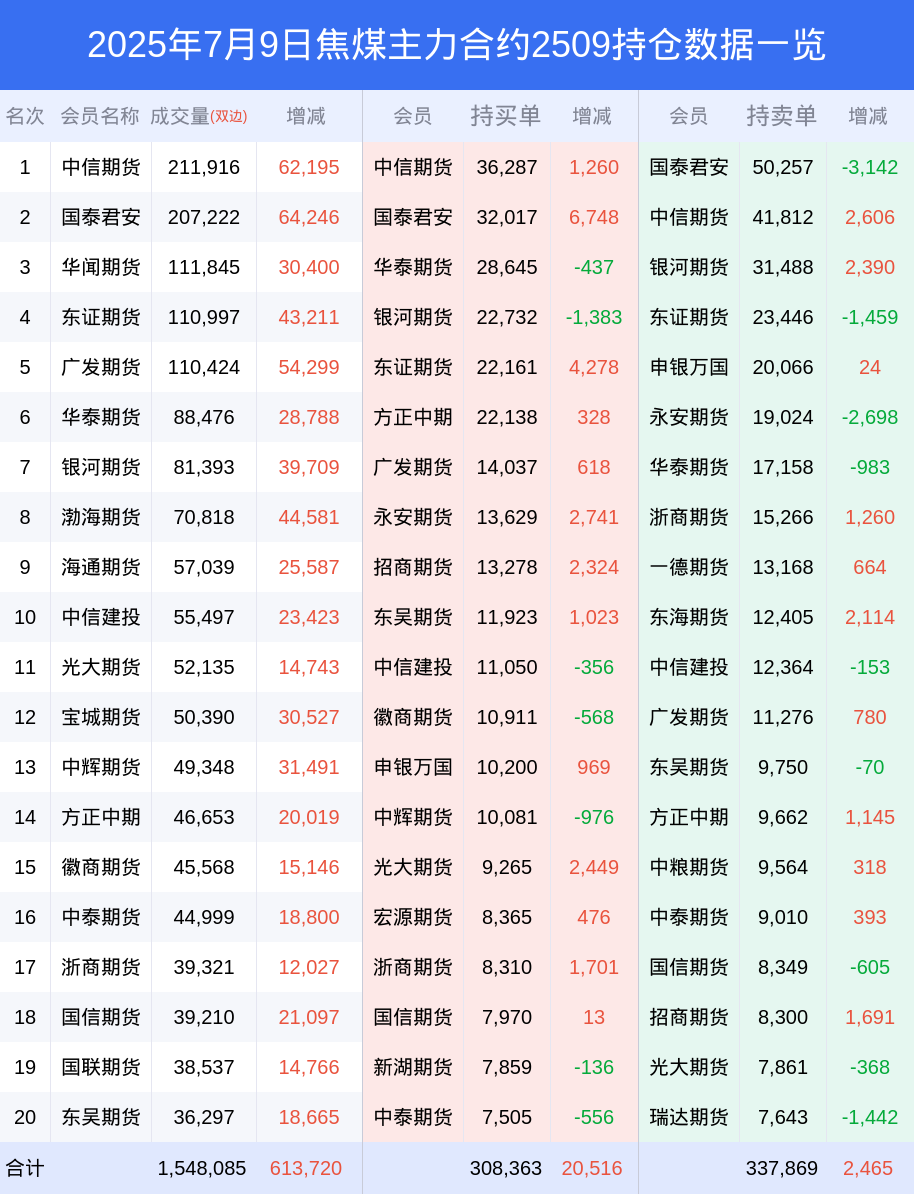 焦煤期货全合约总计成交147.32万手,比上一日新增60.72万手。全合约前20席位多头持仓43.26万手,比上一日增加2.81万手。全合约前20席位空头持仓48.87万手,比上一日增加1.25万手。
