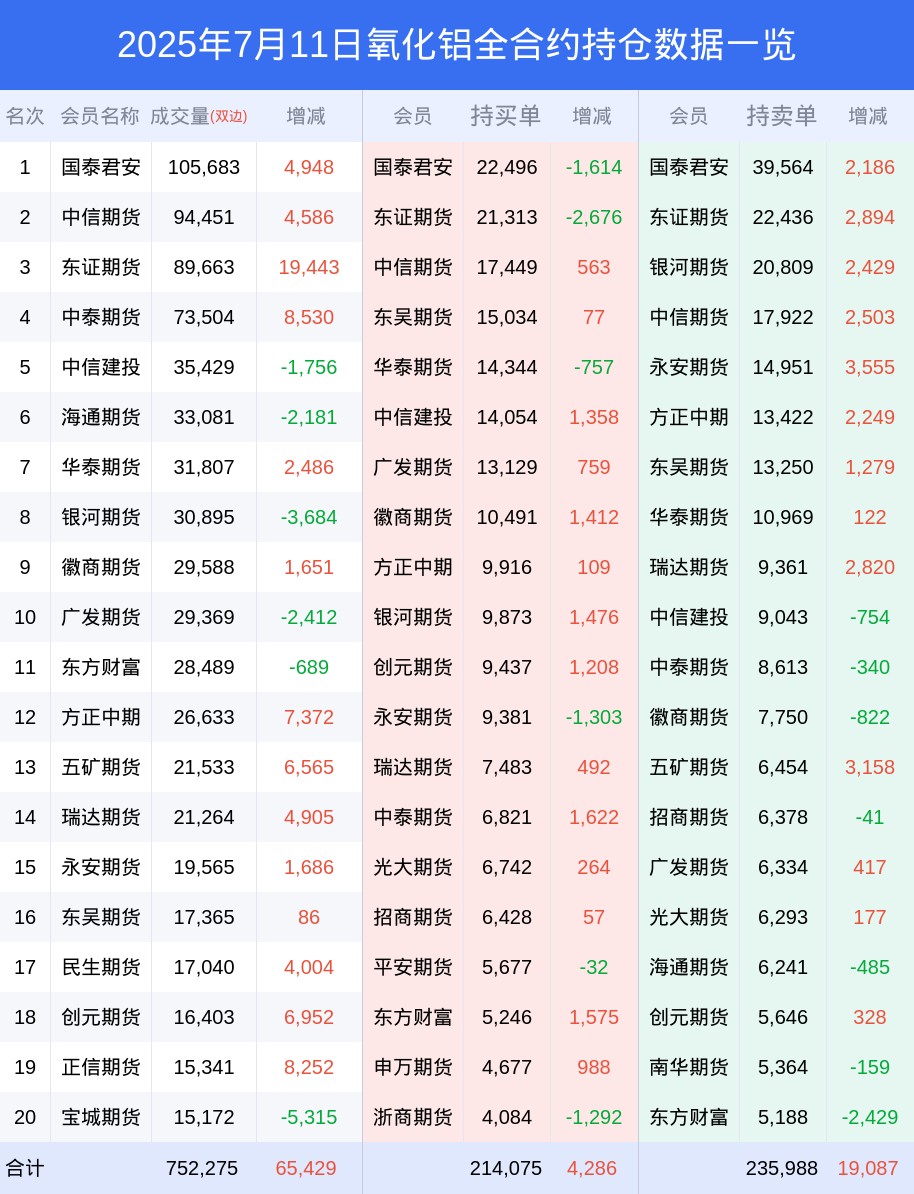 11日氧化铝下跌2.44%,最新持仓变化