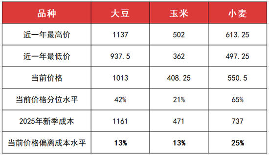 最近伴随着美国新一轮关税相对较预期偏高影响农产品出口预期,阶段性产区天气稳定和优良率偏高,非商业持仓进一步押注空头,导致CBOT农产品价格再度承压,其中大豆,玉米和小麦的当前价格已经分别跌破新季的种植成本13%,13%,25%。(USDA在5月初发布的美国农作物成本预测中显示,玉米,大豆和小麦的每亩生产成本为915.51美元/英亩,650.34美元/英亩,404.15美元/英亩。)