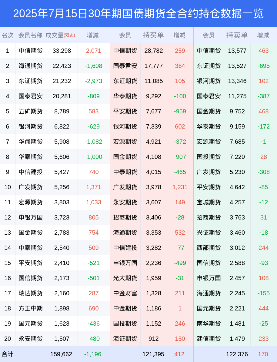 15日30年期国债期货上涨0.47%,最新持仓变化