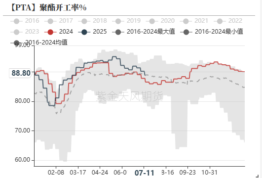 下游需求:中性需求聚酯负荷88.8%,瓶片按计划检修,长丝有减产计划,7-8月负荷预期下降。