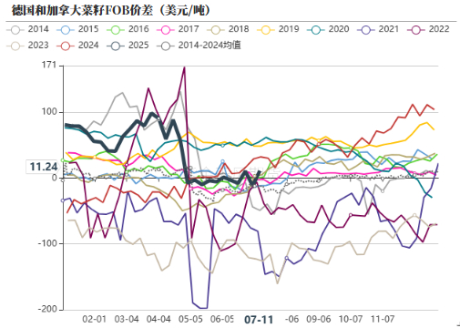 • 截至到7月11日,德国、乌克兰与加拿大菜籽价差扩大,德国和乌克兰菜籽价格相对弱一些,欧洲菜籽处于收割阶段。