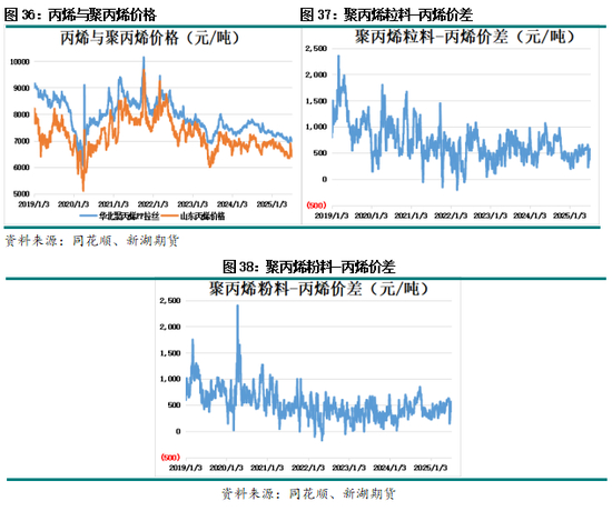 从实际价格的影响情况来看,聚丙烯价格波动对于丙烯单体价格所产生的影响是要明显大于丙烯单体价格对于聚丙烯现货价格的影响。一方面是因为国内大部分聚丙烯粒料装置都配套有丙烯生产装置,据统计,目前聚丙烯粒料中需要外采丙烯的产能仅占总产能的2%,而且随着聚丙烯粒料其他工艺新产能的不断投产,这个比例还将继续下降,因此丙烯单体的价格波动对聚丙烯粒料装置的开工情况影响较小,进而对于聚丙烯价格的影响力度有限。另一方面,聚丙烯粒料价格的波动会通过粉料传导到丙烯单体的价格上。虽然聚丙烯粉料大多是直接购买丙烯单体来生产,丙烯的供应情况对于聚丙烯粉料的生产情况会造成影响,但从理论上来说,粒料在需求端基本可以完全覆盖粉料,并且从性能和稳定性等方面来看,粒料的品质要优于粉料,当两者价差明显低于正常区间时聚丙烯粒料会在部分领域对粉料产生需求替代,从而带动粒粉价差回归正常区间,因此聚丙烯粉料的价格与粒料高度相关,而聚丙烯粉料企业多为民营企业,对于利润的敏感程度较高,若是粉料生产利润不佳,粉料企业便会降低开工率,导致丙烯需求降低,进而带动丙烯单体价格走弱。