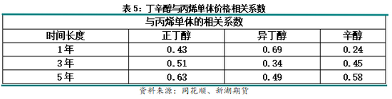 自20世纪末第一套丁辛醇装置于北京化工四厂投产之后,中国陆续投产了大量丁辛醇装置,目前中国丁辛醇产能大约占全球产能的三分之一,是全球最大的丁辛醇生产国,同时也是最大的消费国。丁辛醇是目前丙烯主要下游中利润情况最好的品种之一,一方面是丁辛醇下游需求增速尚可,另一方面是虽然丁辛醇终端利润情况较弱,但由于消费添加比例等因素,终端对于丁辛醇价格的接受程度相对较好。而伴随着利润的好转,丁辛醇与丙烯单体价格相关性也在不断降低,主要制品正丁醇与辛醇的相关性从0.63和0.58下降至0.43和0.24,丙烯价格对于丁辛醇价格的影响不断减弱。